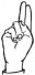На ћирилици написано ВЛАДАН ШЋЕЛОВИЋ састоји се из 14 слова [?]. Исписано ћириличном једноручном азбуком за глувонеме: